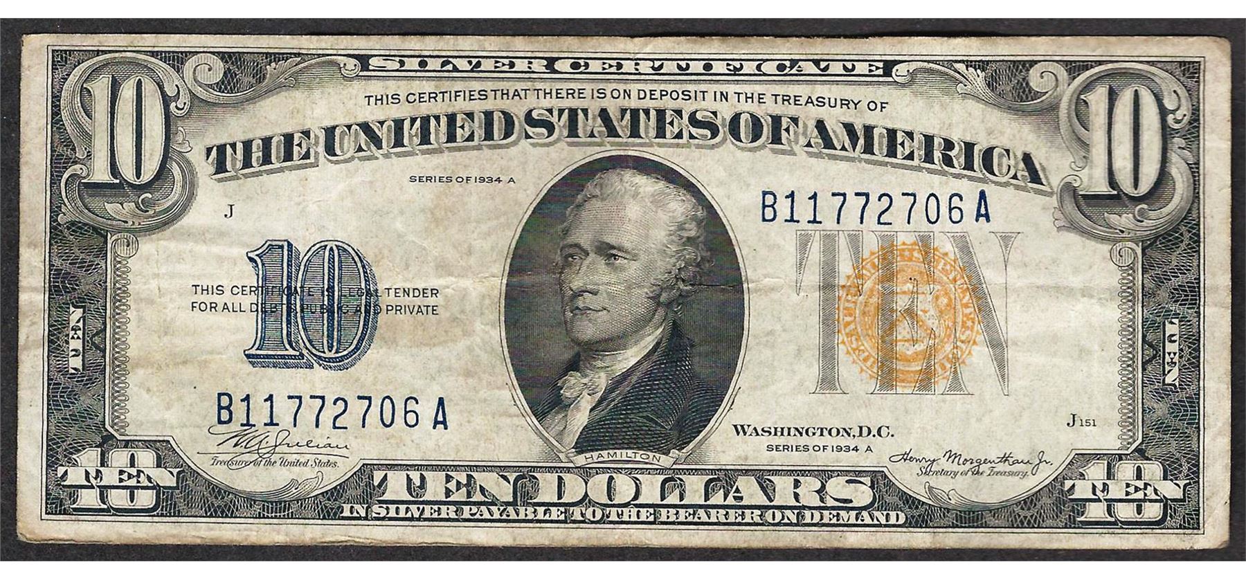One 1934A $10 North Africa Silver Certificate WWII Emergency Note.