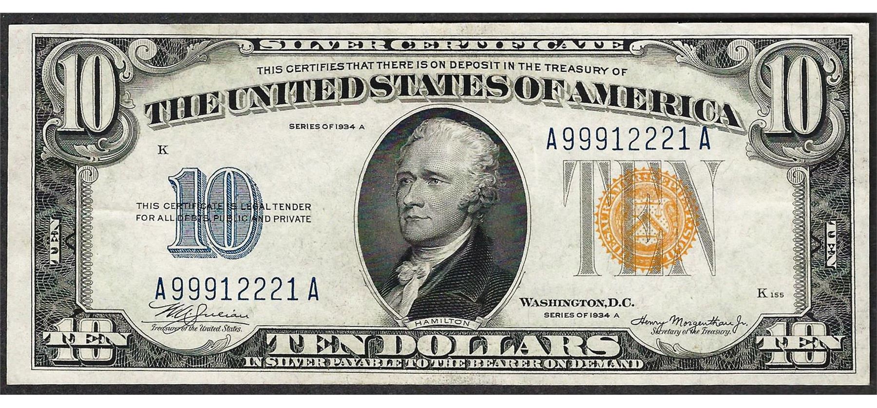 One 1934A $10 North Africa Silver Certificate WWII Emergency Note.