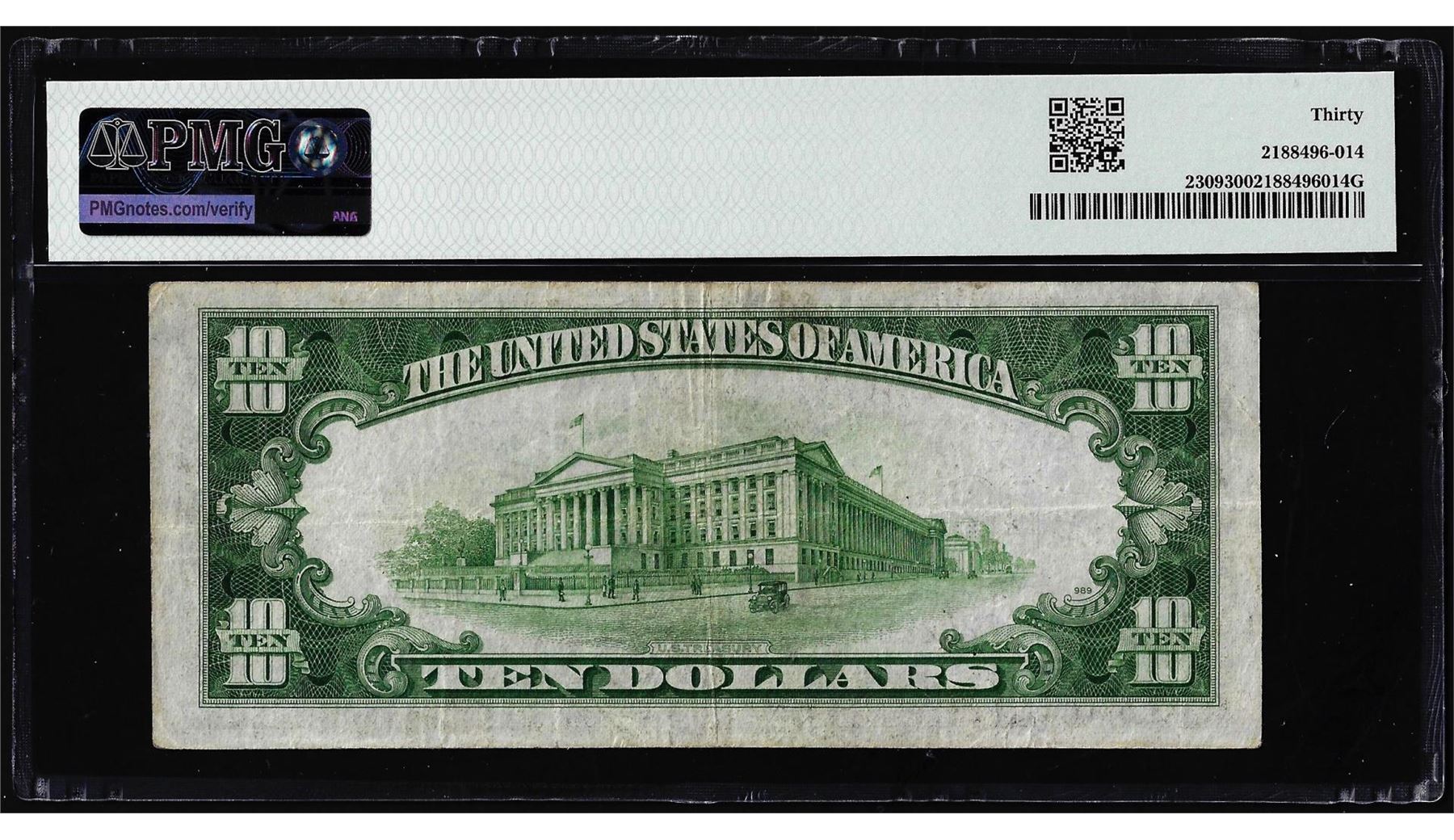 1934A $10 North Africa WWII Emergency Issue Silver Certificate Note PMG Very Fine 30
