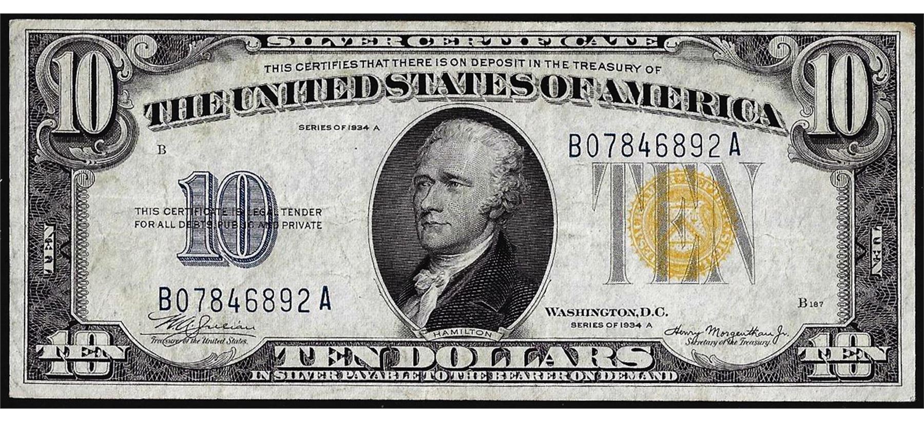 One 1934A $10 North Africa WWII Emergency Issue Silver Certificate Note.