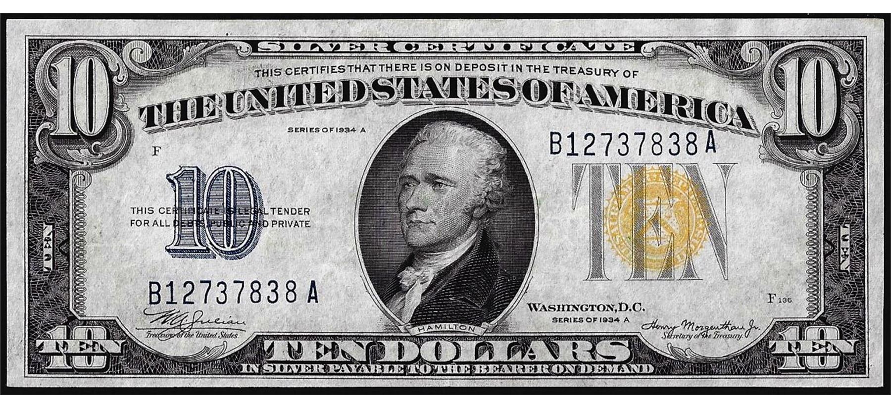 One 1934A $10 North Africa WWII Emergency Issue Silver Certificate Note.