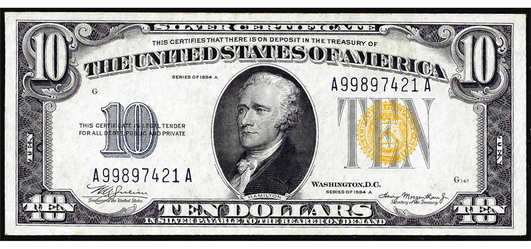 One 1934A $10 North Africa WWII Emergency Issue Silver Certificate Note.