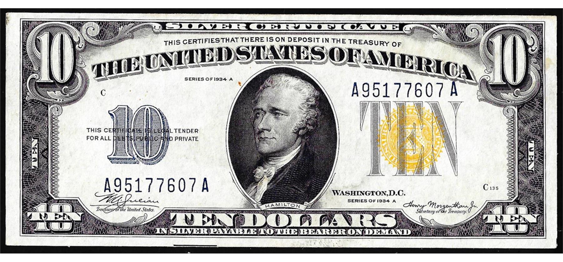 One 1934A $10 North Africa WWII Emergency Issue Silver Certificate Note.