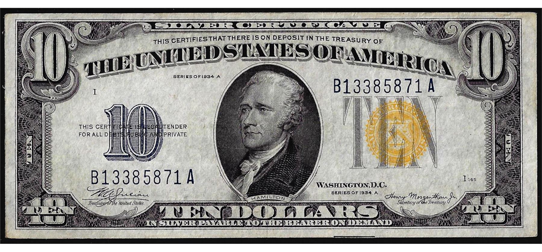 One 1934A $10 North Africa WWII Emergency Issue Silver Certificate Note.