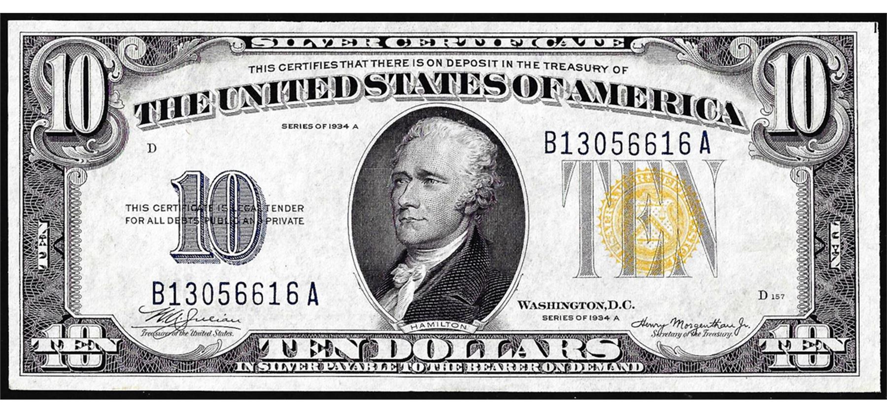 One 1934A $10 North Africa WWII Emergency Issue Silver Certificate Note.