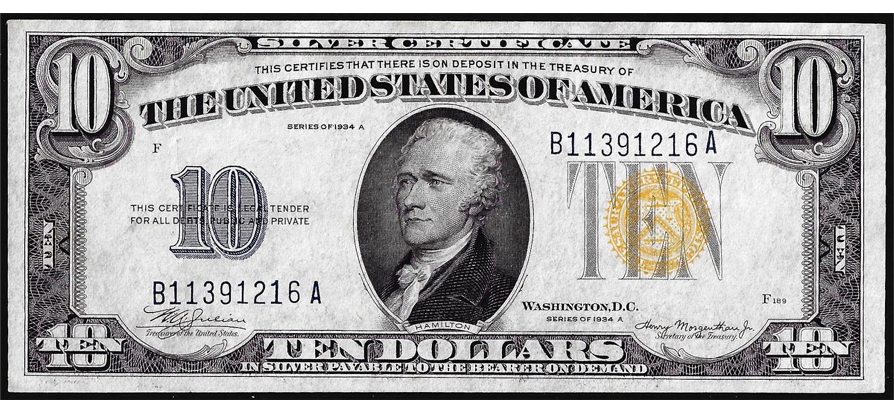 One 1934A $10 North Africa WWII Emergency Issue Silver Certificate Note.