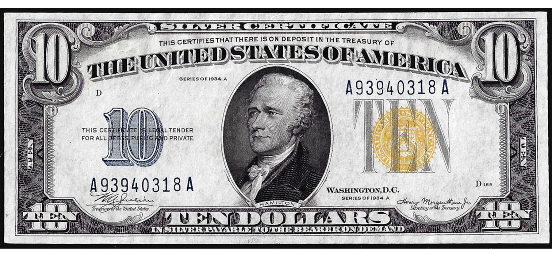1934A $10 North Africa WWII Emergency Issue Silver Certificate Note