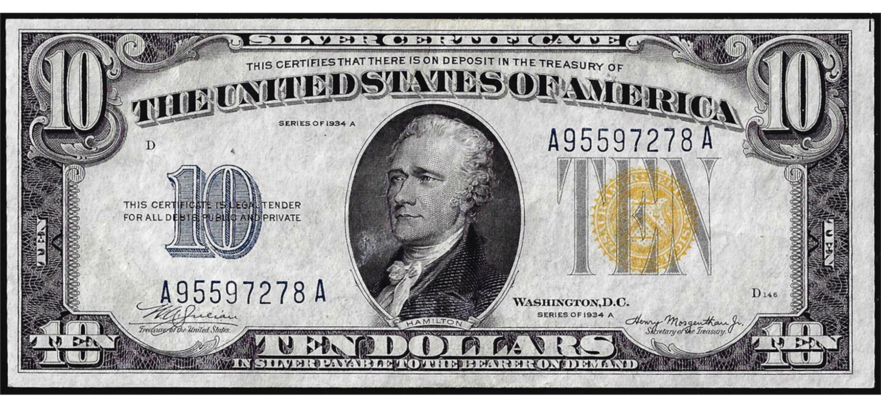 One 1934A $10 North Africa WWII Emergency Issue Silver Certificate Note.