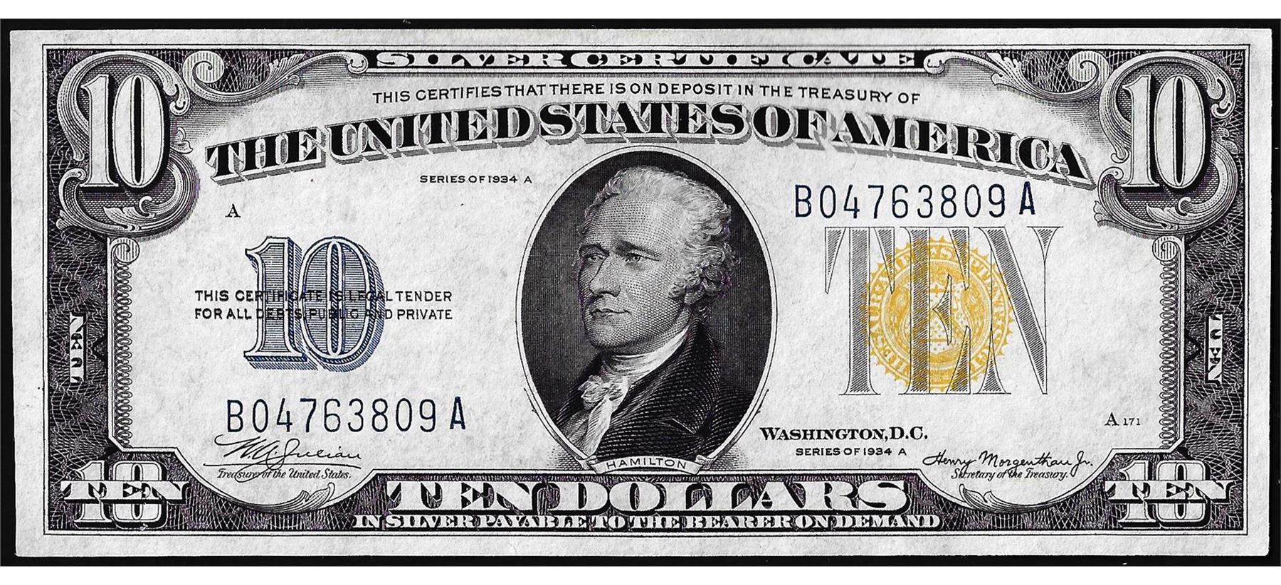 One 1934A $10 North Africa WWII Emergency Issue Silver Certificate Note.