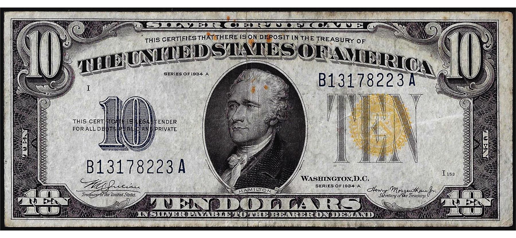 1934A $10 North Africa WWII Emergency Issue Silver Certificate Note