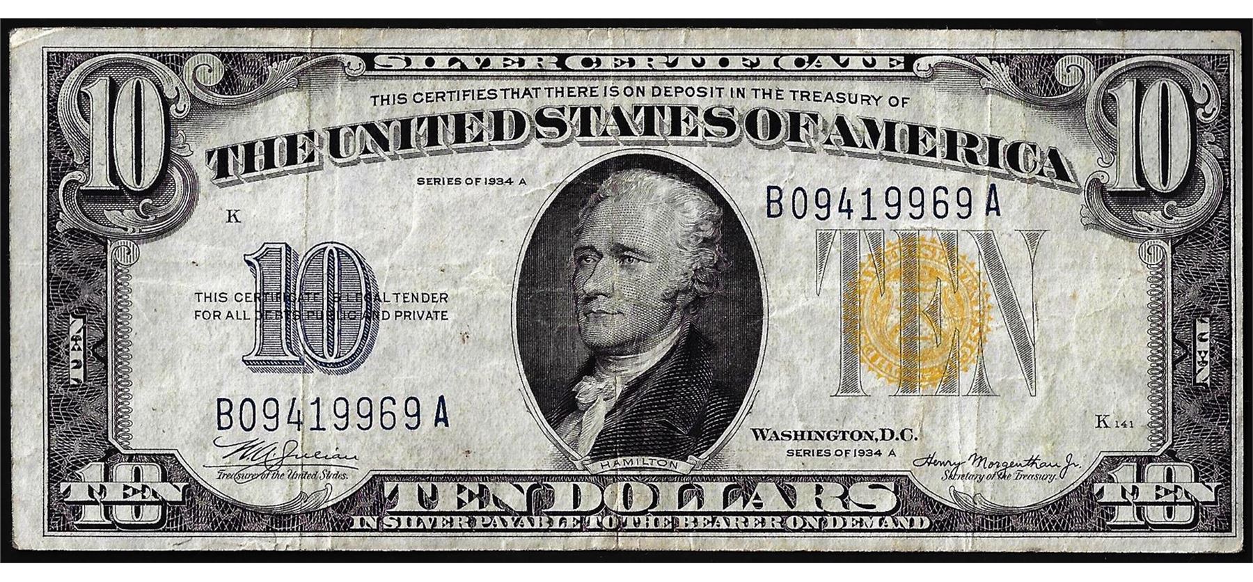 One 1934A $10 North Africa WWII Emergency Issue Silver Certificate Note.