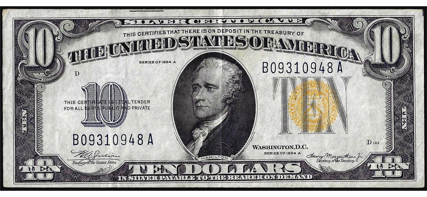 One 1934A $10 North Africa WWII Emergency Issue Silver Certificate Note.