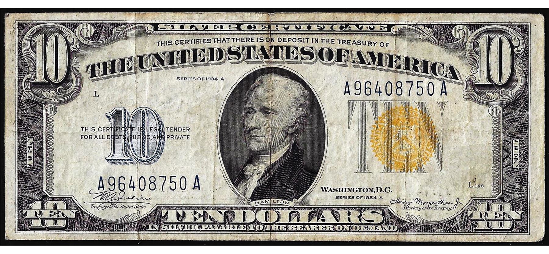 One 1934A $10 North Africa WWII Emergency Issue Silver Certificate Note.