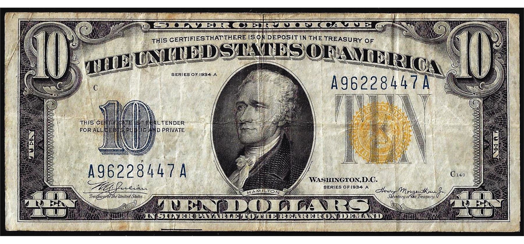 One 1934A $10 North Africa WWII Emergency Issue Silver Certificate Note.