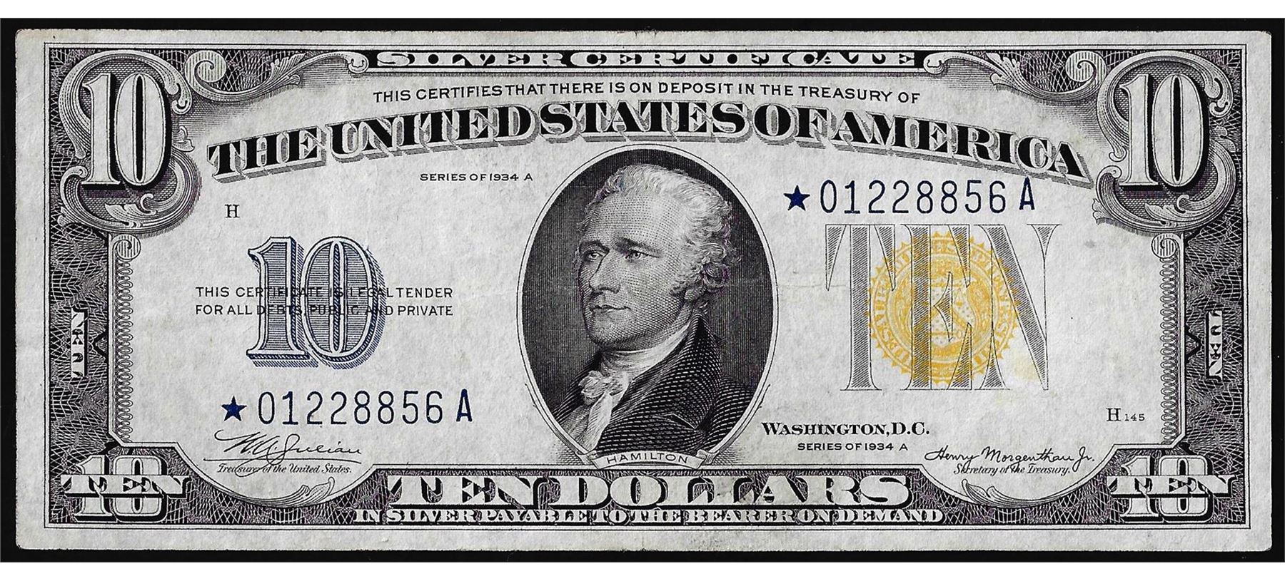 One 1934A $10 North Africa WWII Emergency Issue Silver Certificate Star Note.