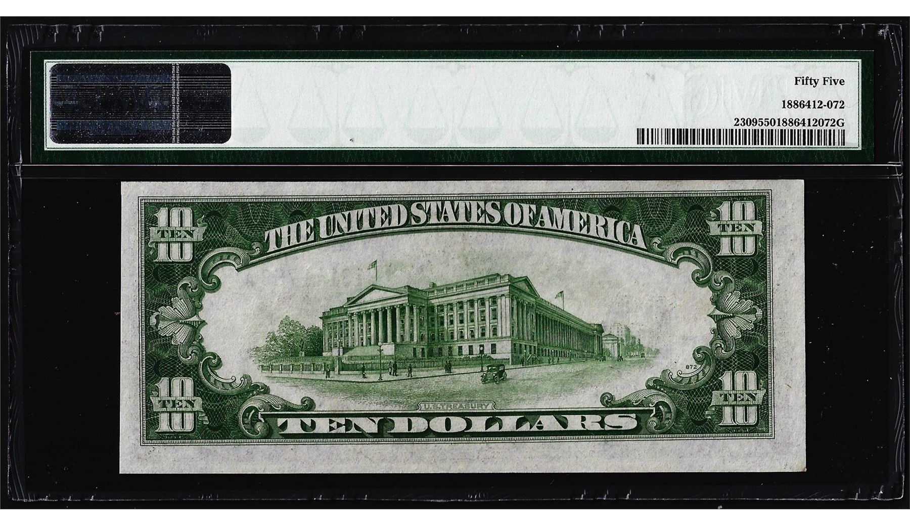 One 1934A $10 North Africa WWII Emergency Silver Certificate Note PMG About Uncirculated 55. PMG Certified.