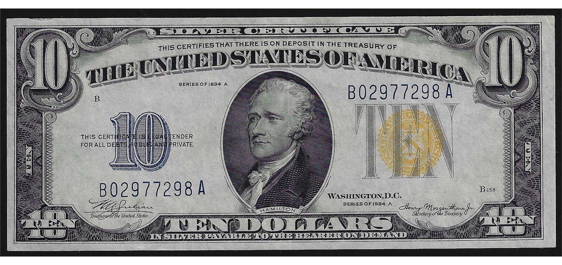 One 1934A $10 North Africa WWII Emergency Silver Certificate Note.