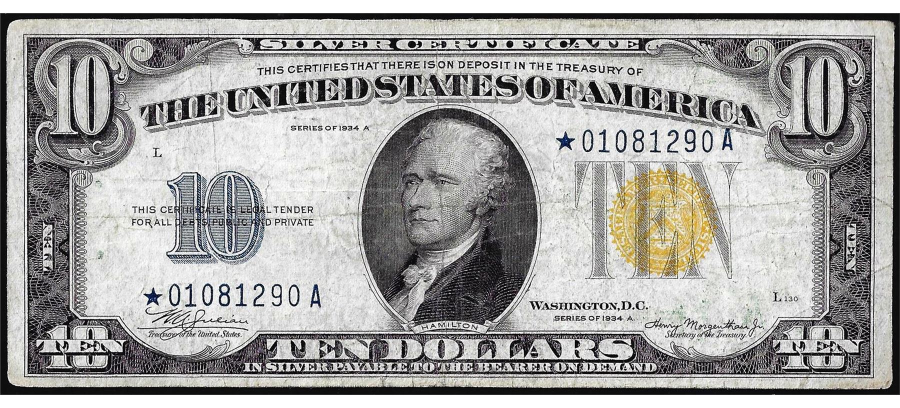 One 1934A $10 North Africa WWII Emergency Silver Certificate Star Note.