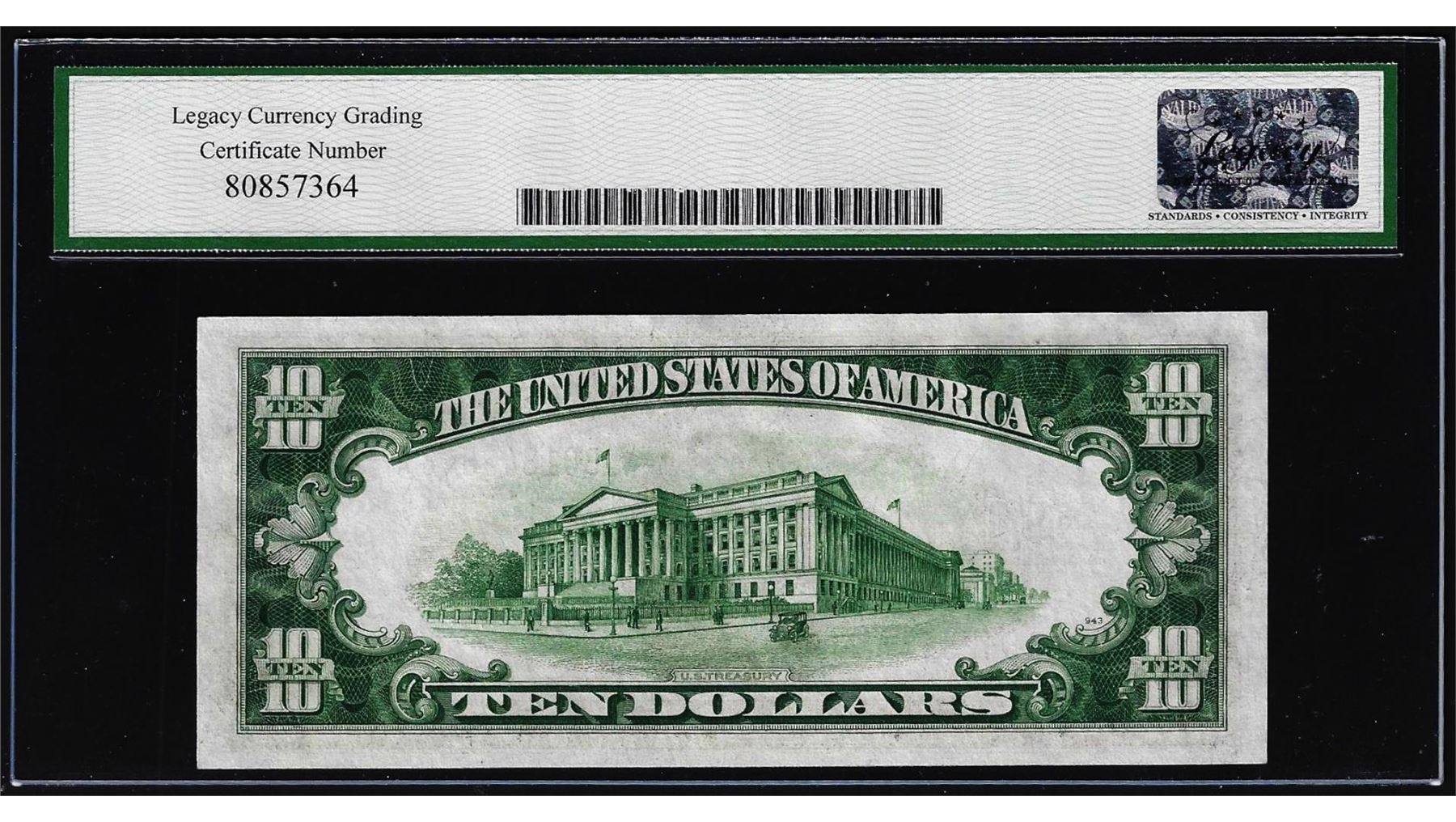 One 1934A $10 North Africa WWII Silver Certificate Note Fr.2309 Legacy Gem New 65PPQ. Legacy Graded.