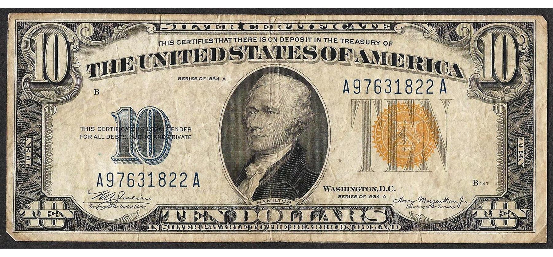 1934A $10 Silver Certificate WWI Emergency North Africa Note