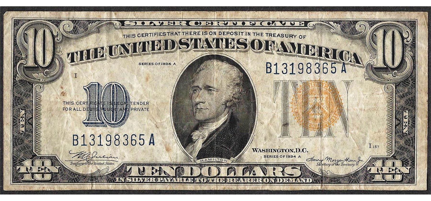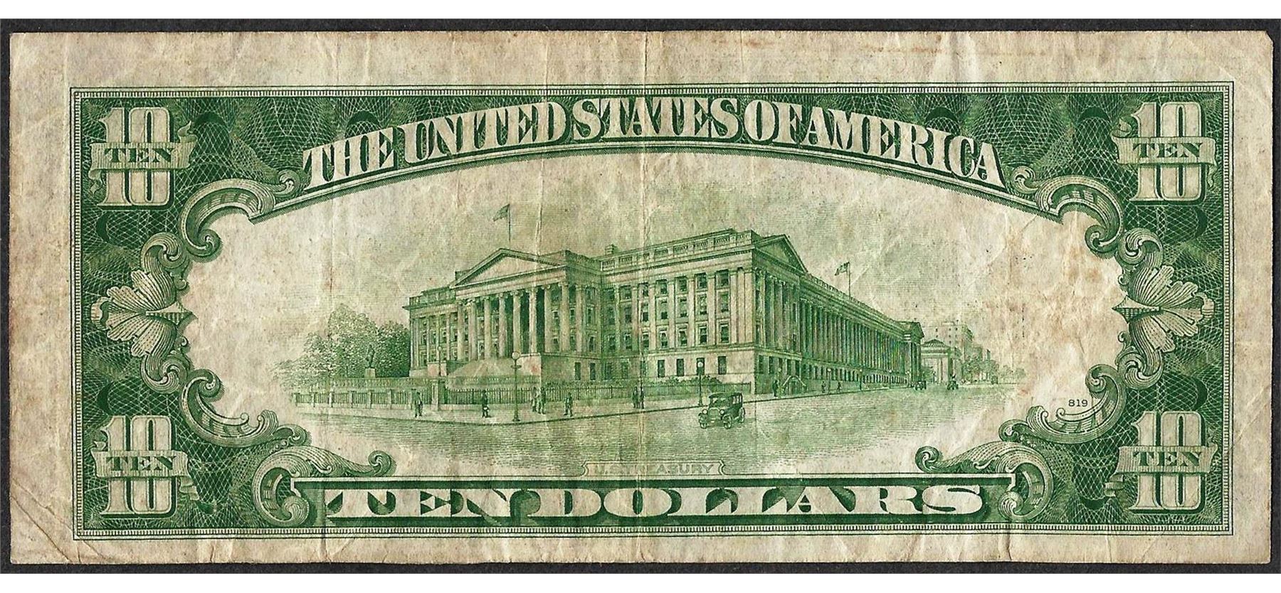 One 1934A $10 Silver Certificate WWI Emergency North Africa Note.