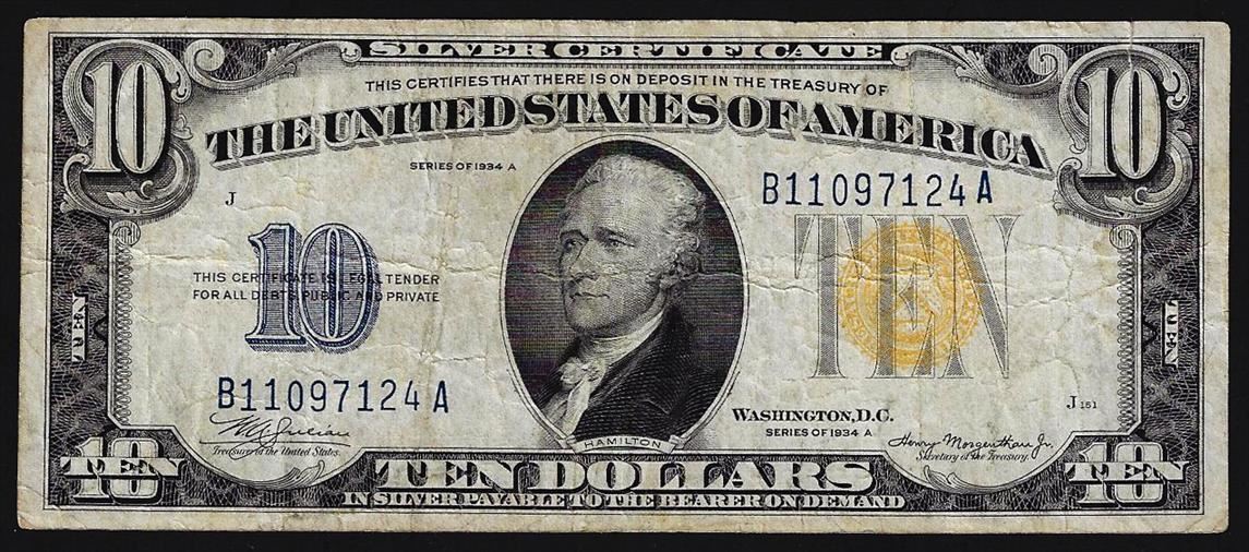 One 1934A $10 Silver Certificate WWII Emergency North Africa Note.