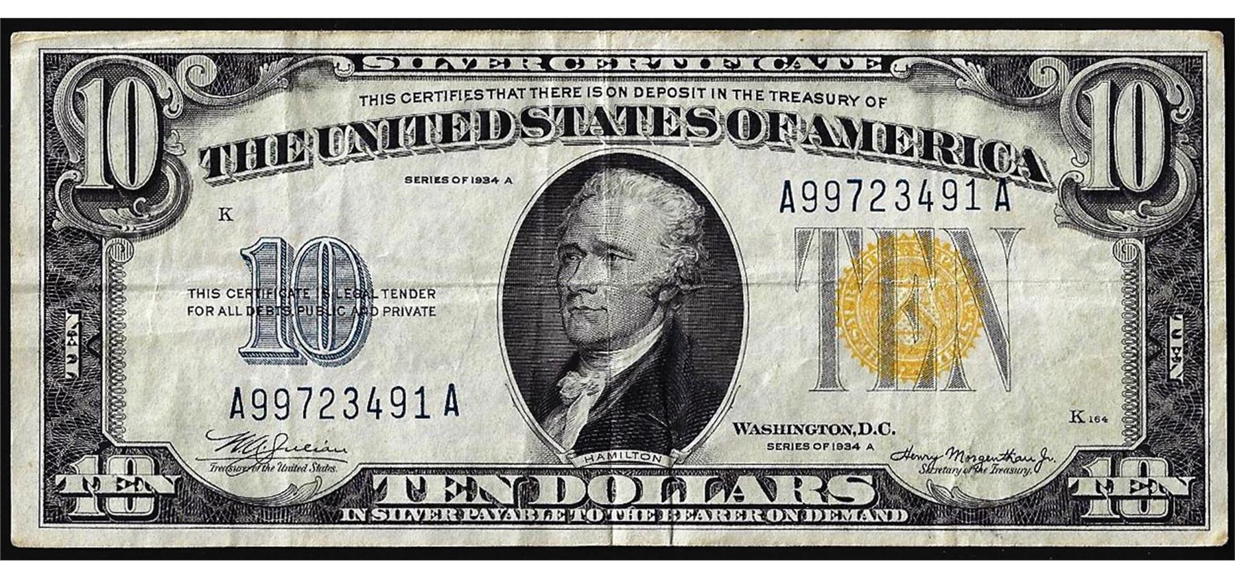 One 1934A $10 Silver Certificate WWII Emergency North Africa Note.