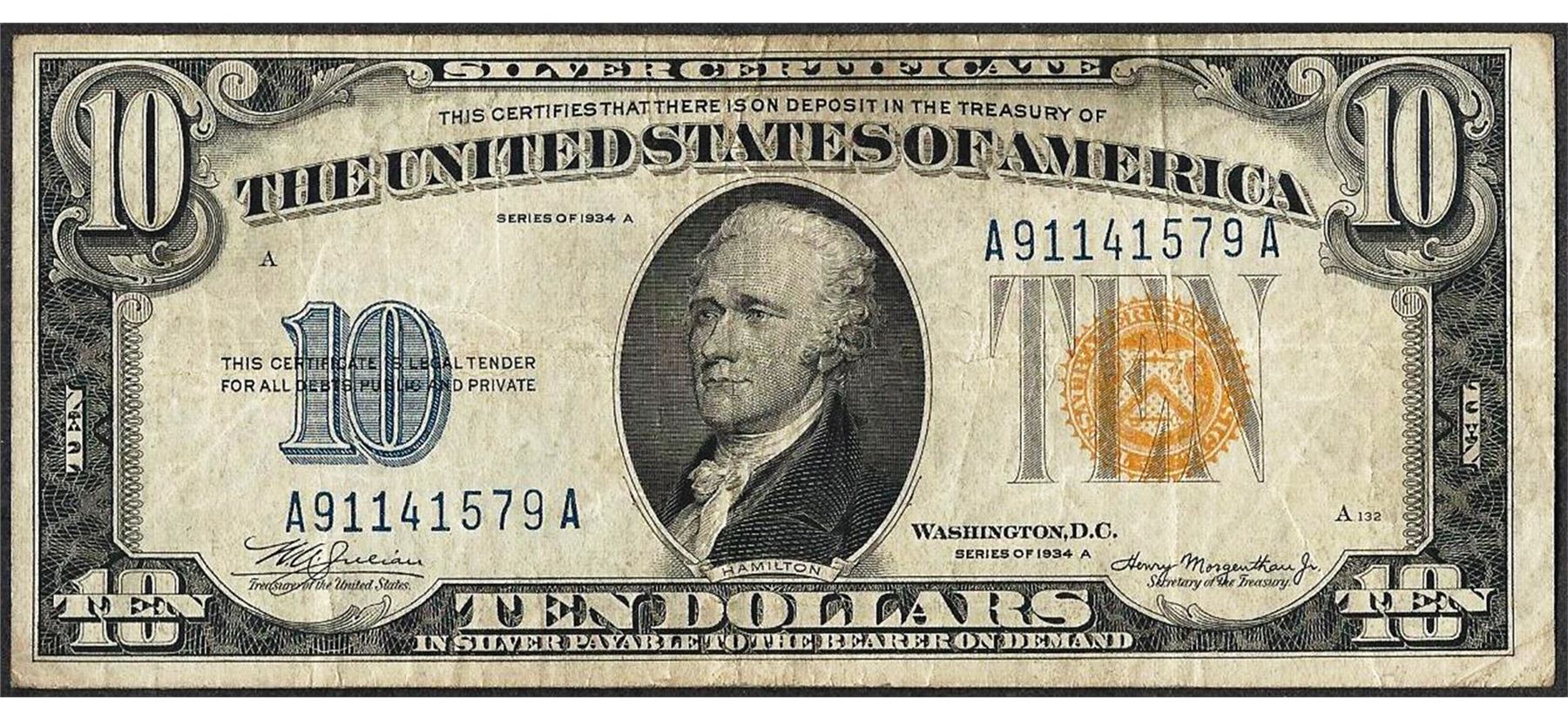 One 1934A $10 Silver Certificate WWII Emergency North Africa Note.