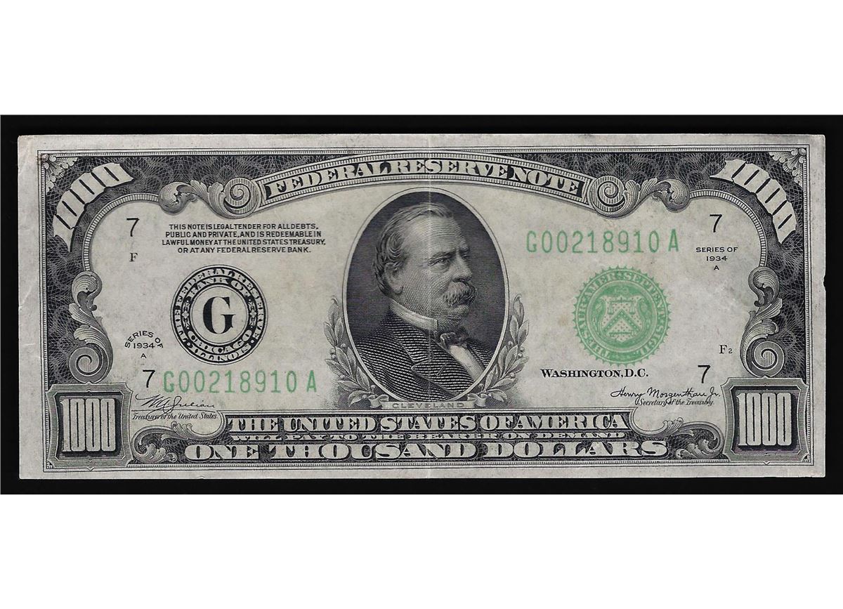 One 1934A $1000 Federal Reserve Bank Note Chicago.