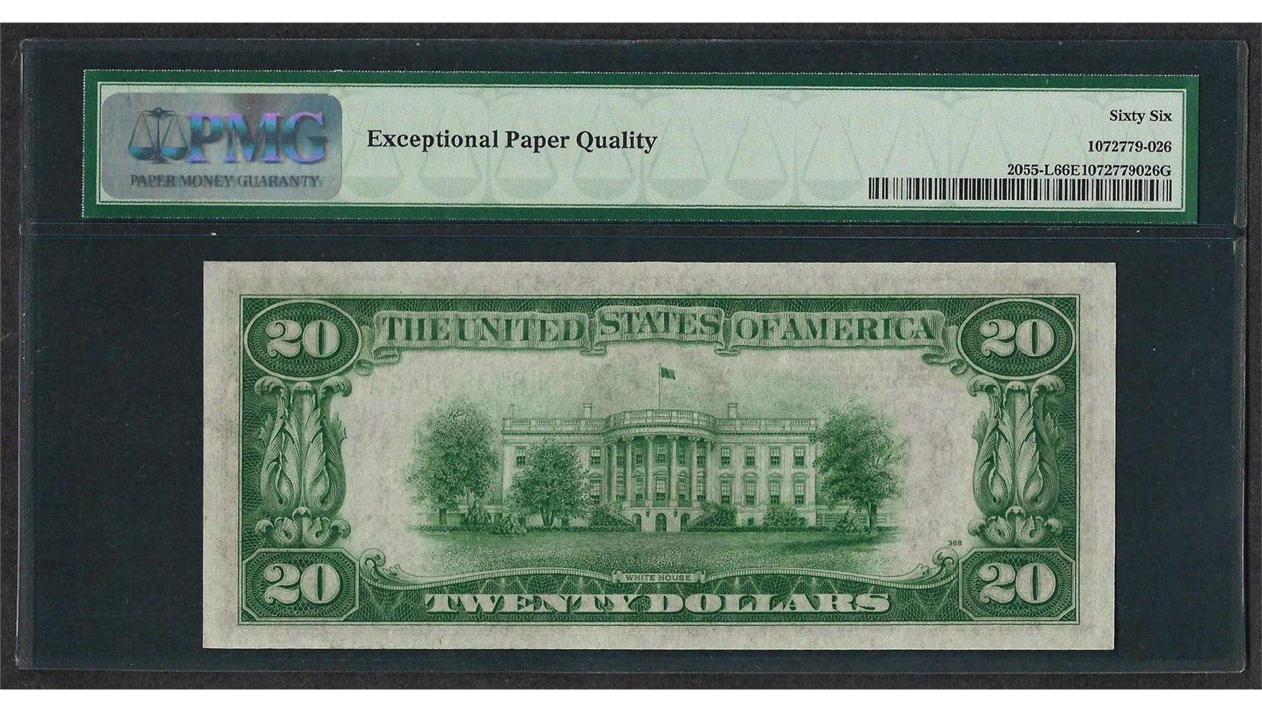 1934A $20 Federal Reserve Note San Francisco Fr.2055-L PMG Gem Uncirculated 66EP