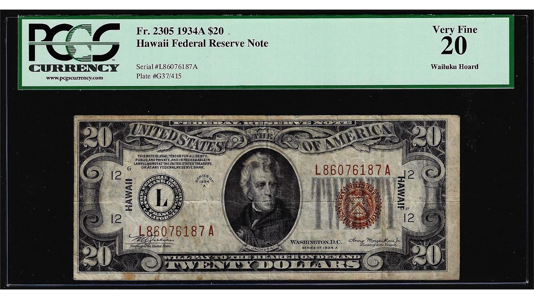1934A $20 Hawaii Federal Reserve Note WWII Emergency Note PCGS Very Fine 20