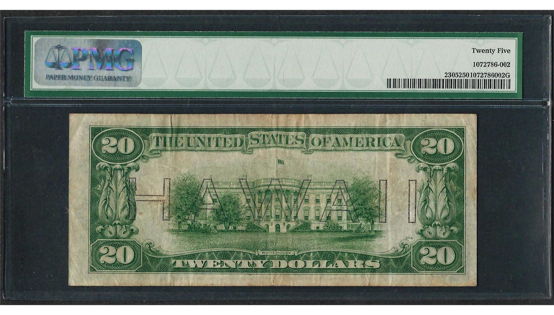 1934A $20 Hawaii Federal Reserve WWII Emergency Note PMG Very Fine 25 Late Finis