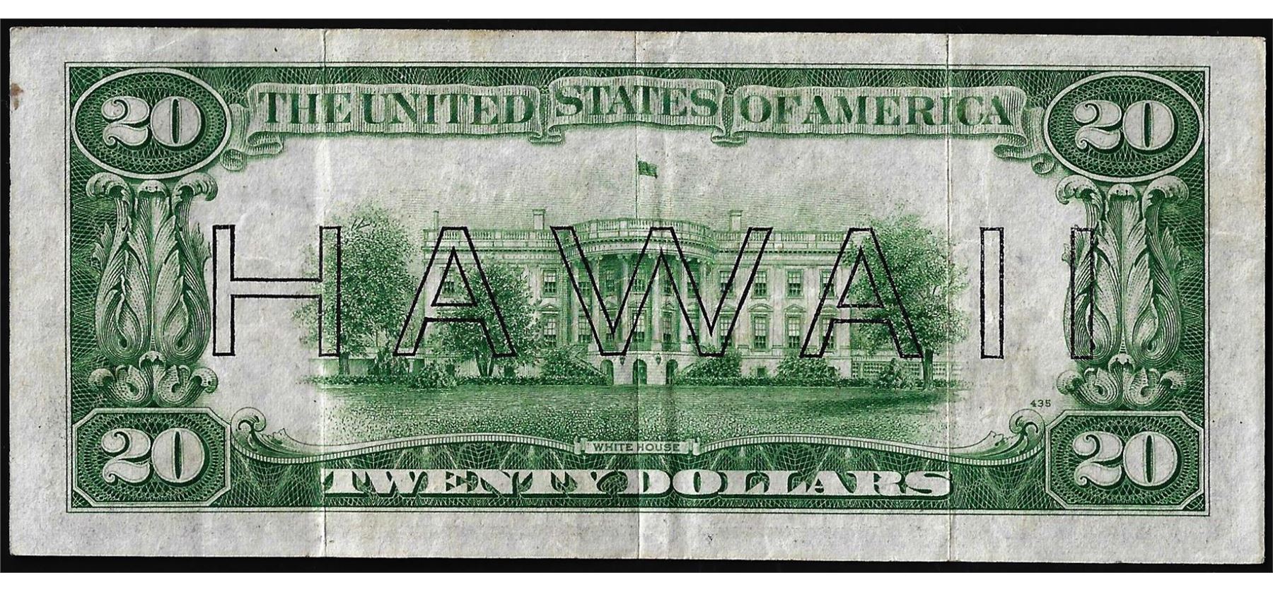 One 1934A $20 Hawaii WWII Emergency Issue Federal Reserve Note.