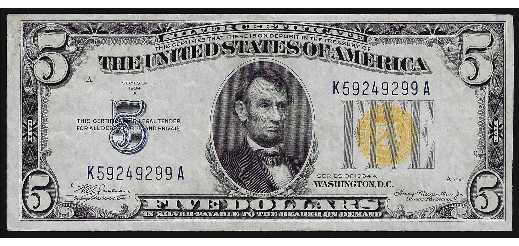 One 1934A $5 North Africa Silver Certificate Emergency Note.