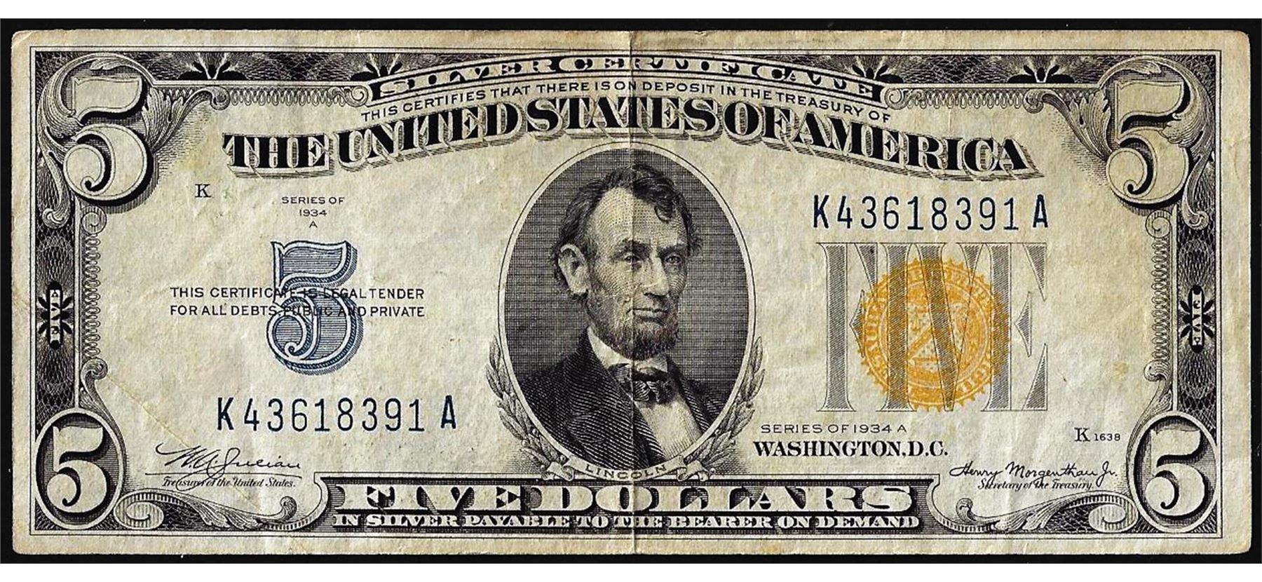 1934A $5 Silver Certificate WWII Emergency North Africa Note
