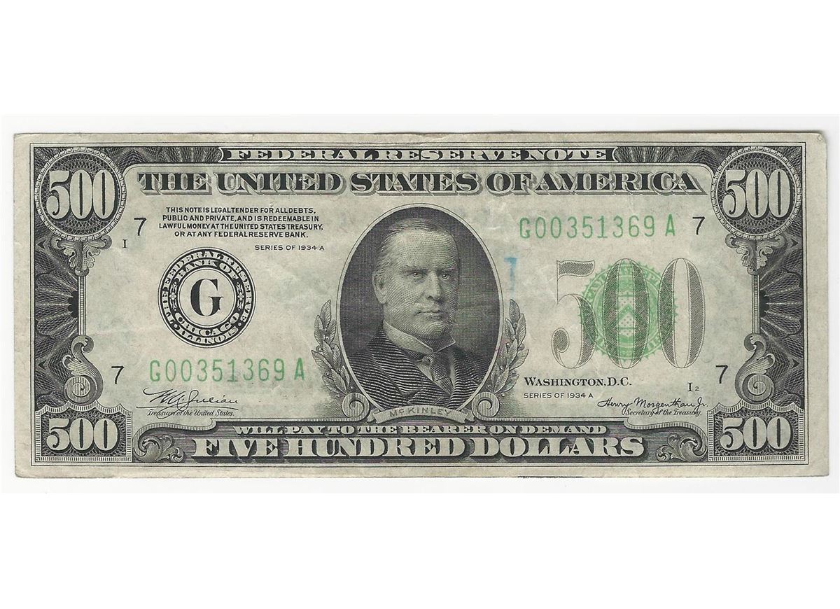 One 1934A $500 Federal Reserve Bank Note Chicago.