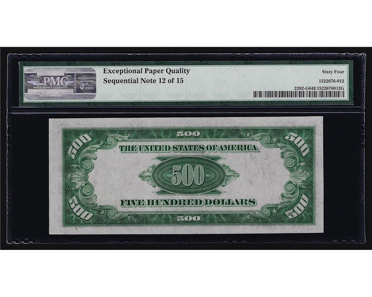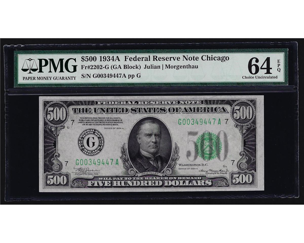 One 1934A $500 Federal Reserve Note Chicago PMG Choice Uncirculated 64EPQ. PMG Certified.