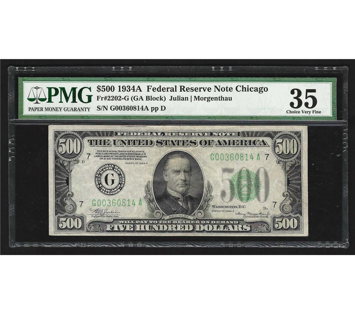 One 1934A $500 Federal Reserve Note Chicago PMG Choice VF35. PMG Certified.