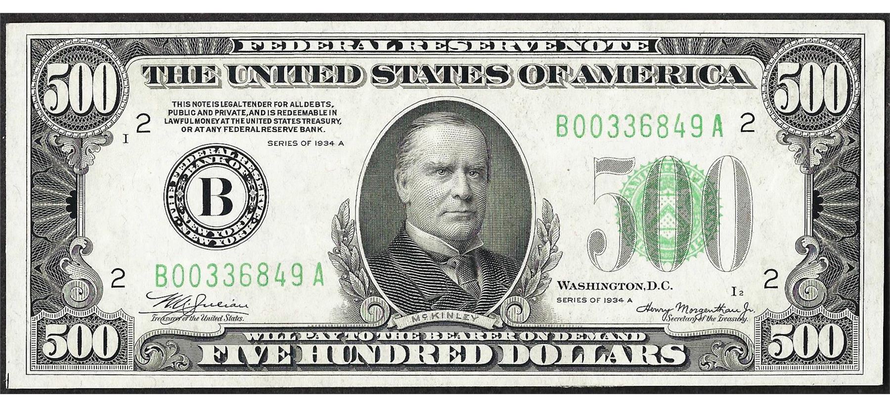 One 1934A $500 Federal Reserve Note New York.