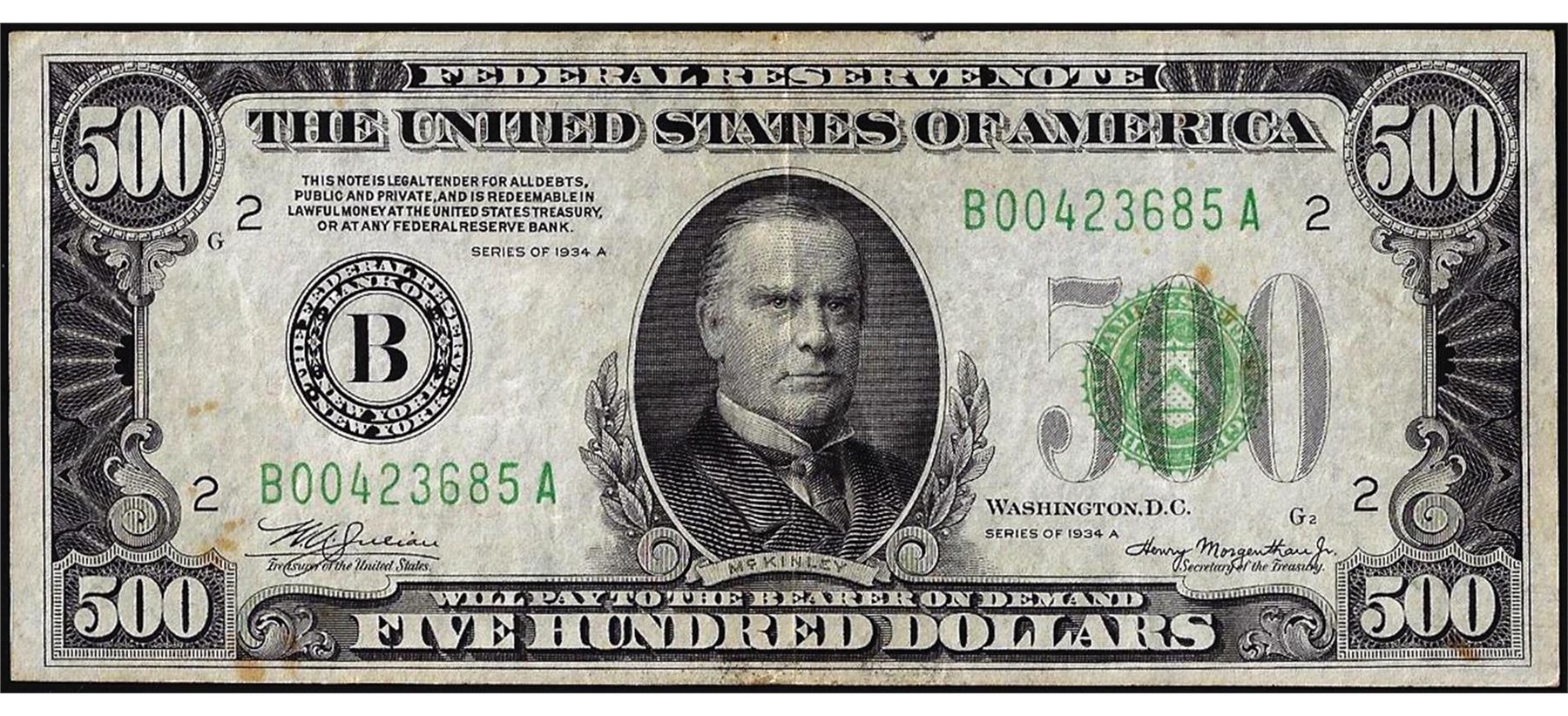 One 1934A $500 Federal Reserve Note New York.