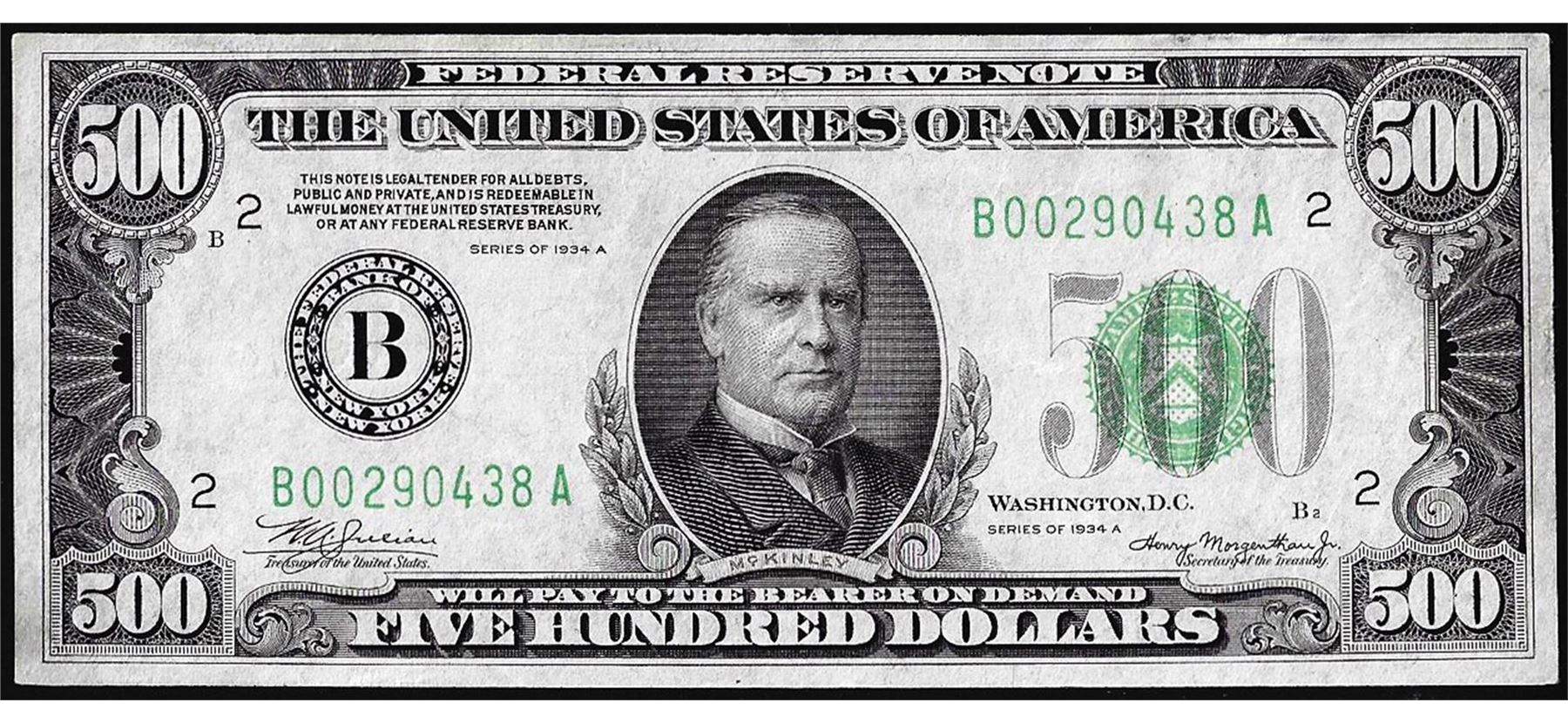 One 1934A $500 Federal Reserve Note New York.