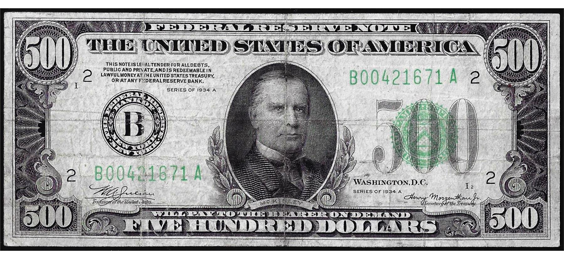 One 1934A $500 Federal Reserve Note New York.