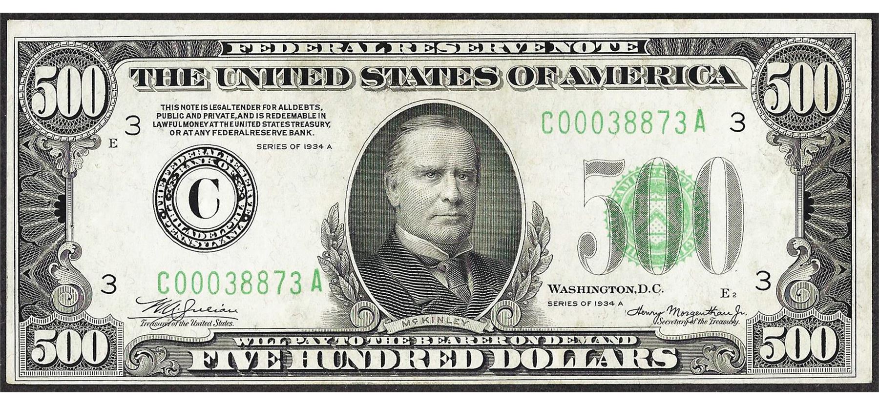 One 1934A $500 Federal Reserve Note Philadelphia.
