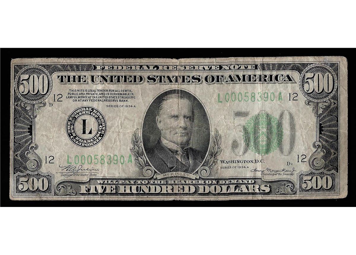 One 1934A $500 Federal Reserve Note San Francisco CA.