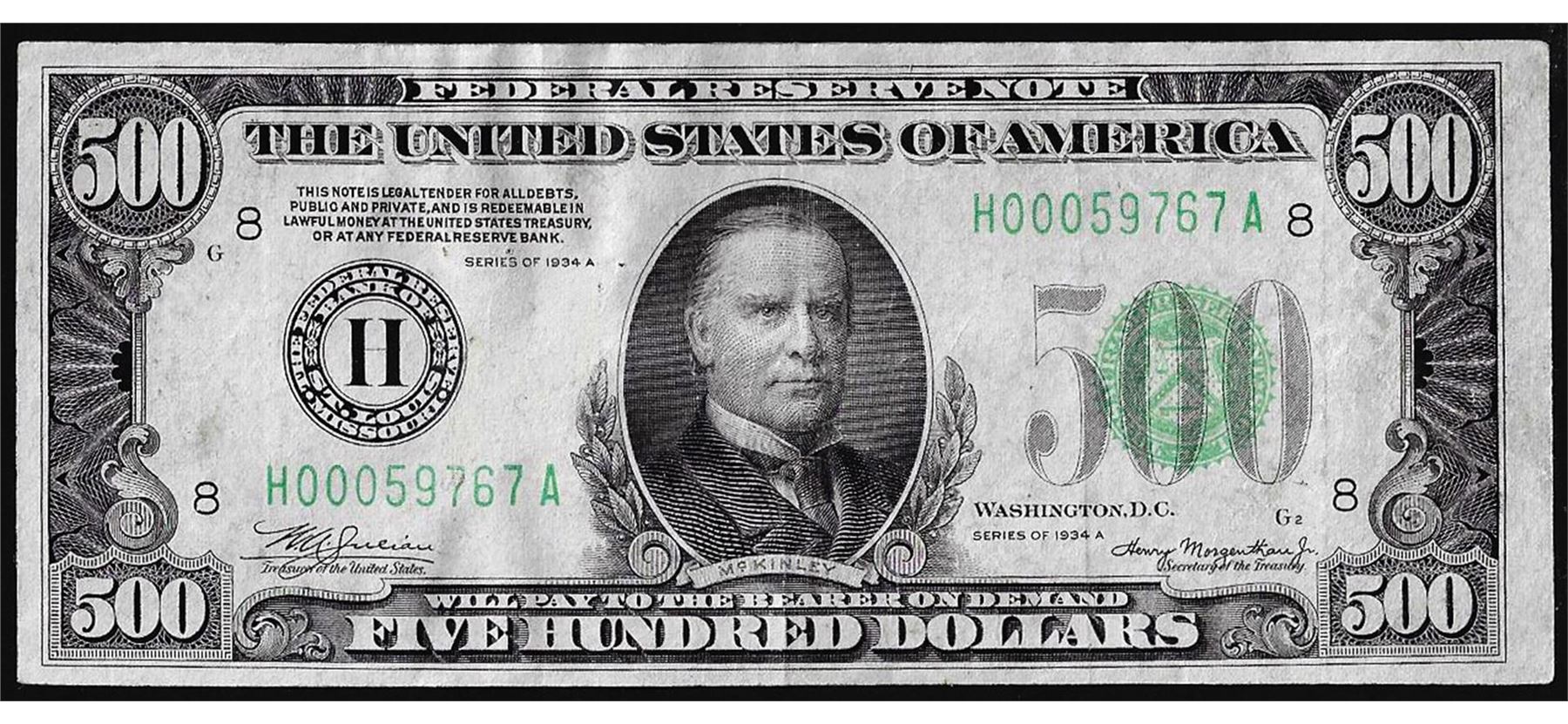 One 1934A $500 Federal Reserve Note St. Louis.
