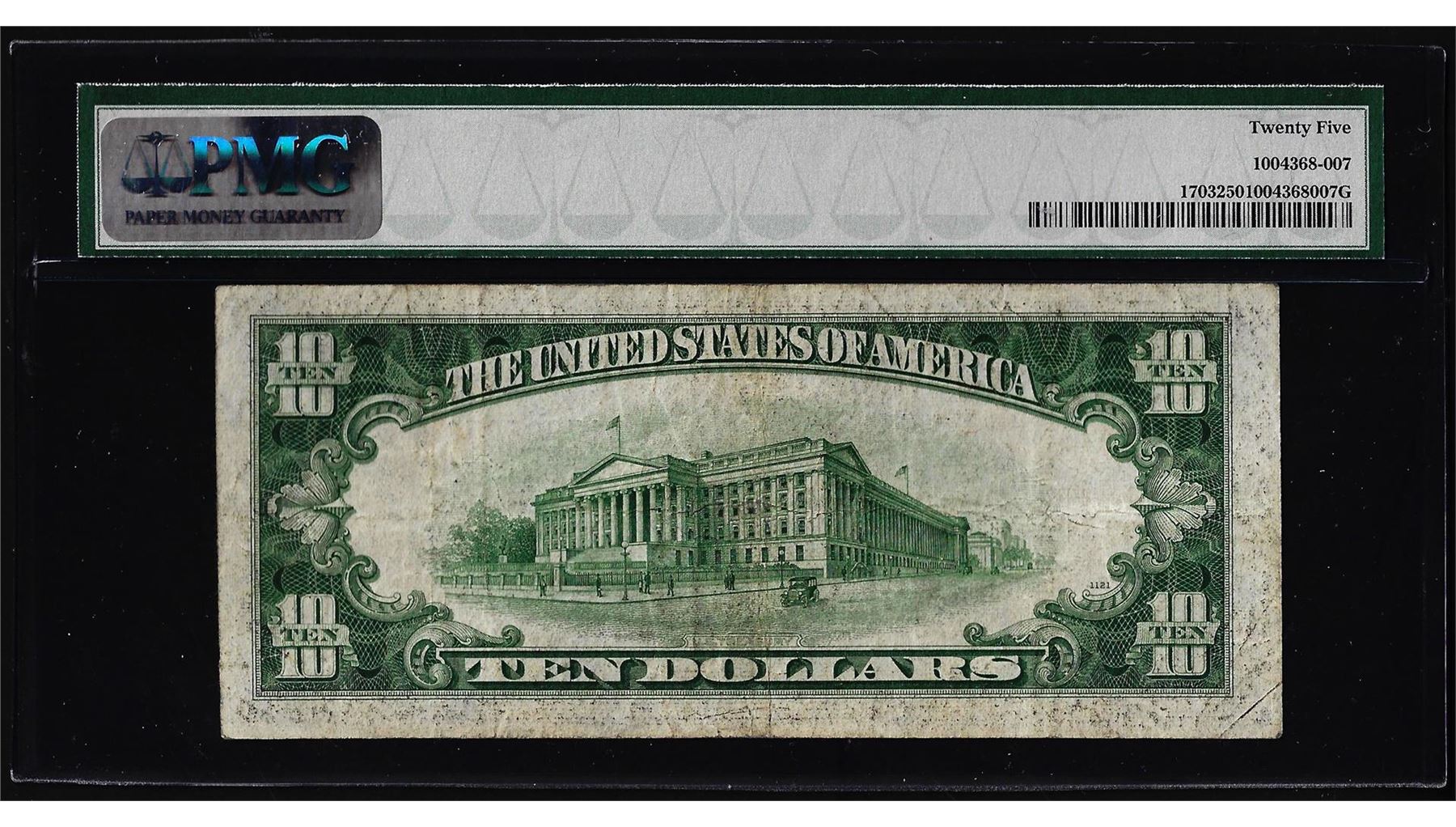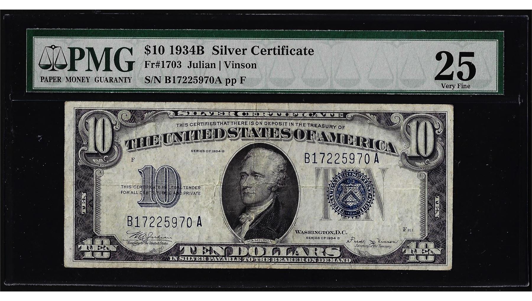 One 1934B $10 Silver Certificate Note Fr.1703 PMG Very Fine 25. PMG Certified.