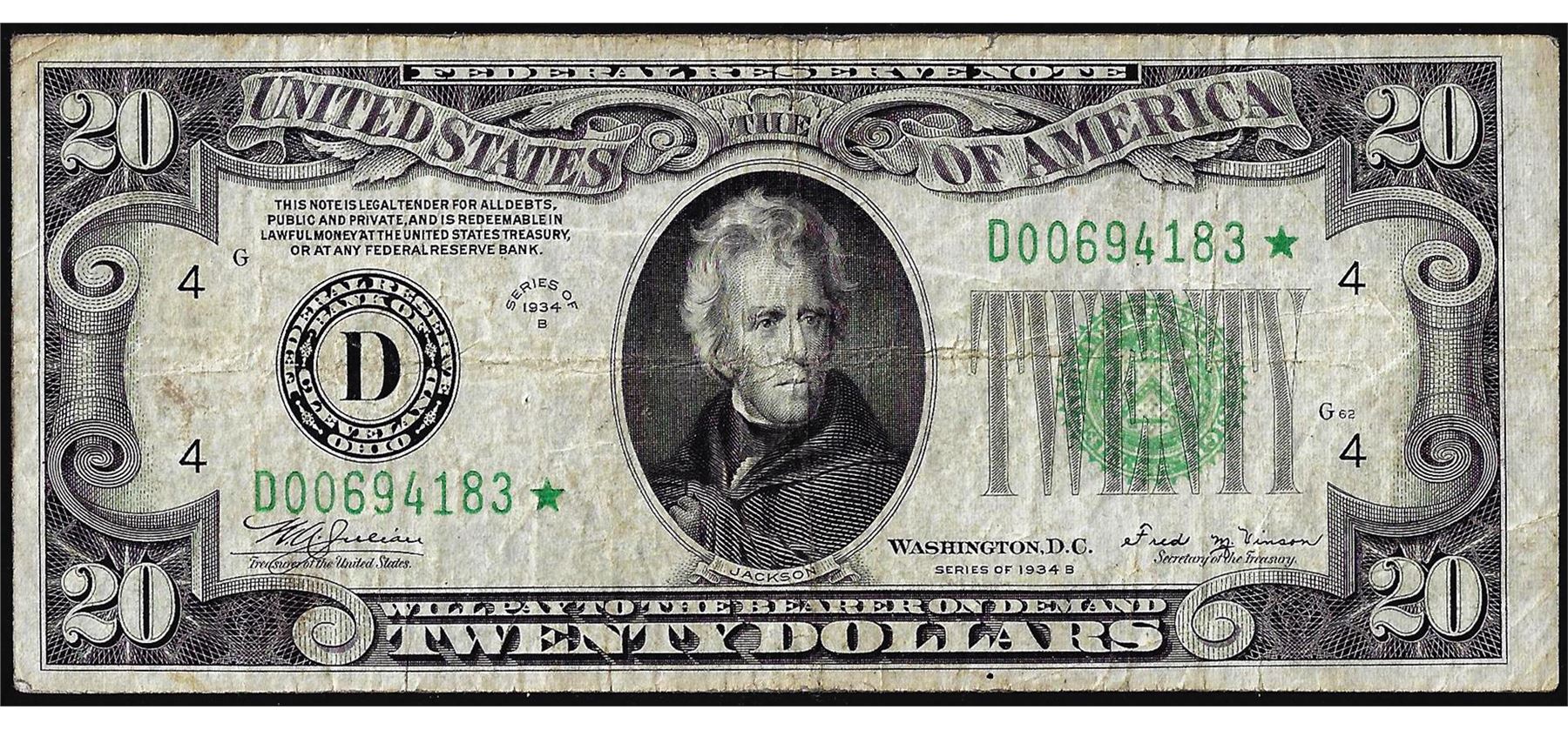 One 1934B $20 Federal Reserve Star Note Cleveland.