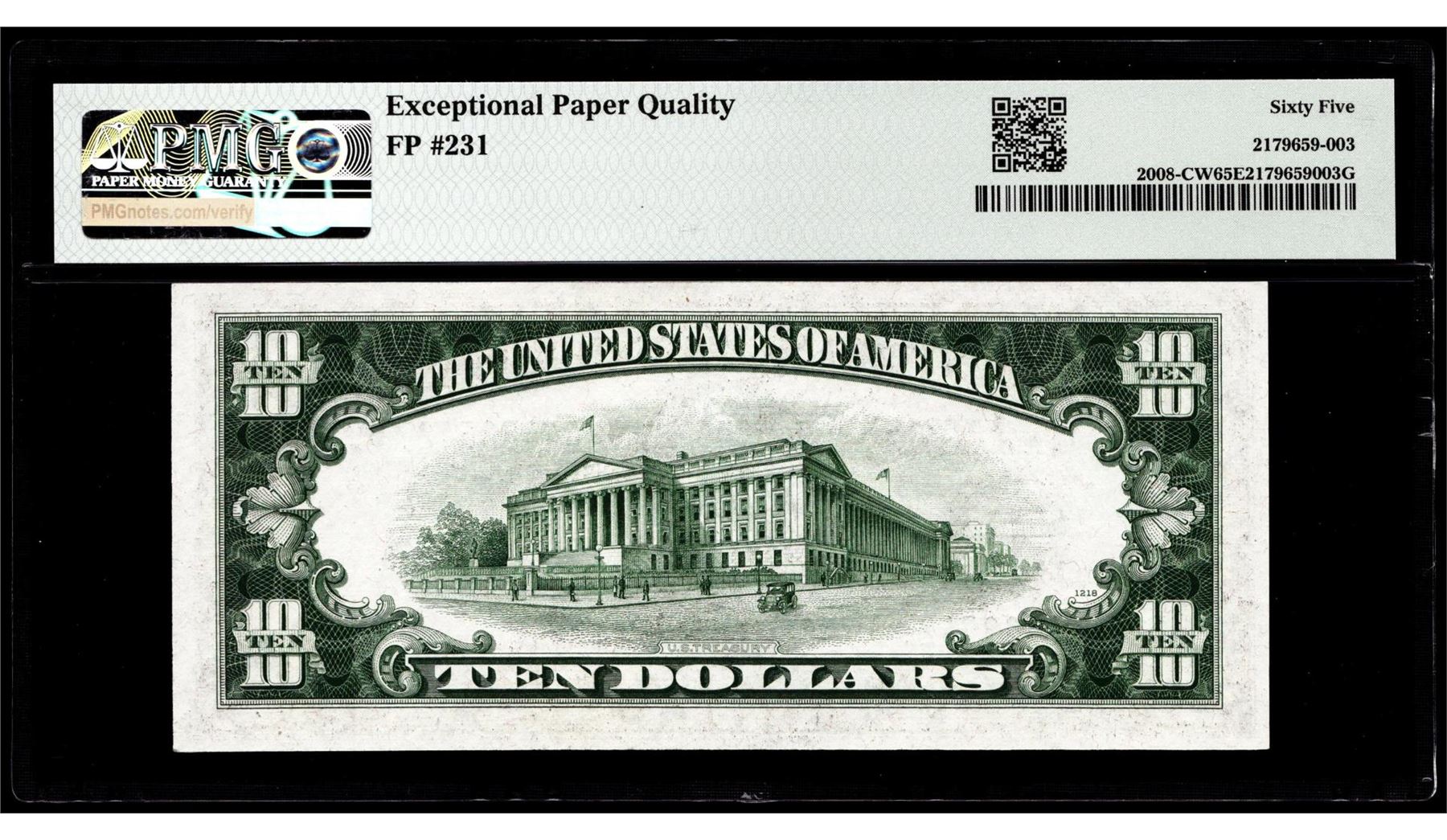 One 1934C $10 Federal Reserve Note Philadelphia Fr.2008-CW PMG Gem Uncirculated 65EPQ. PMG Certified.