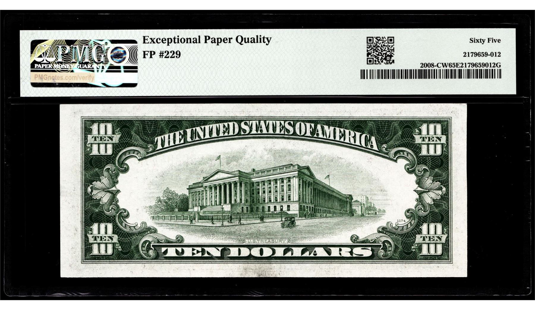 1934C $10 Federal Reserve Note Philadelphia Fr.2008-CW PMG Gem Uncirculated 65EPQ