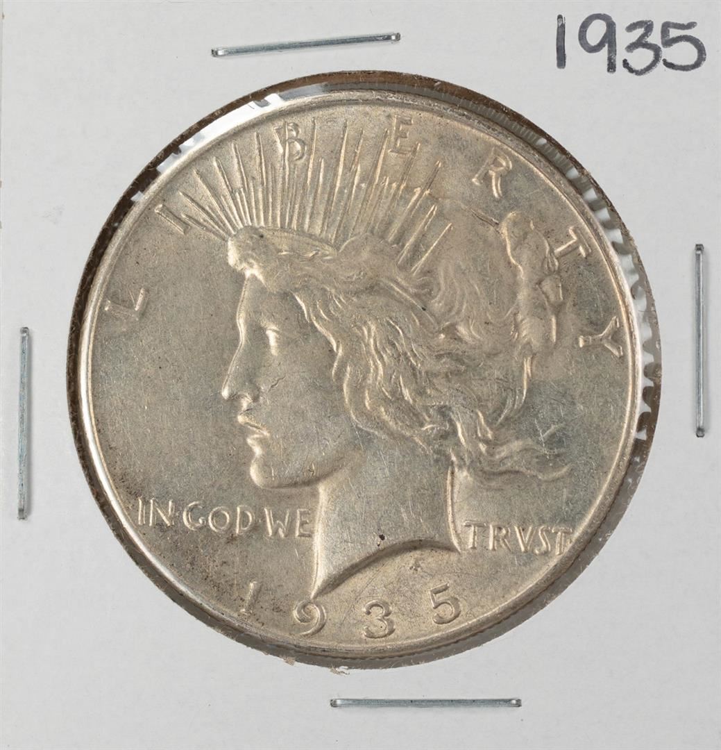 One 1935 $1 Peace Silver Dollar Coin.